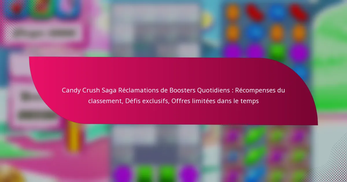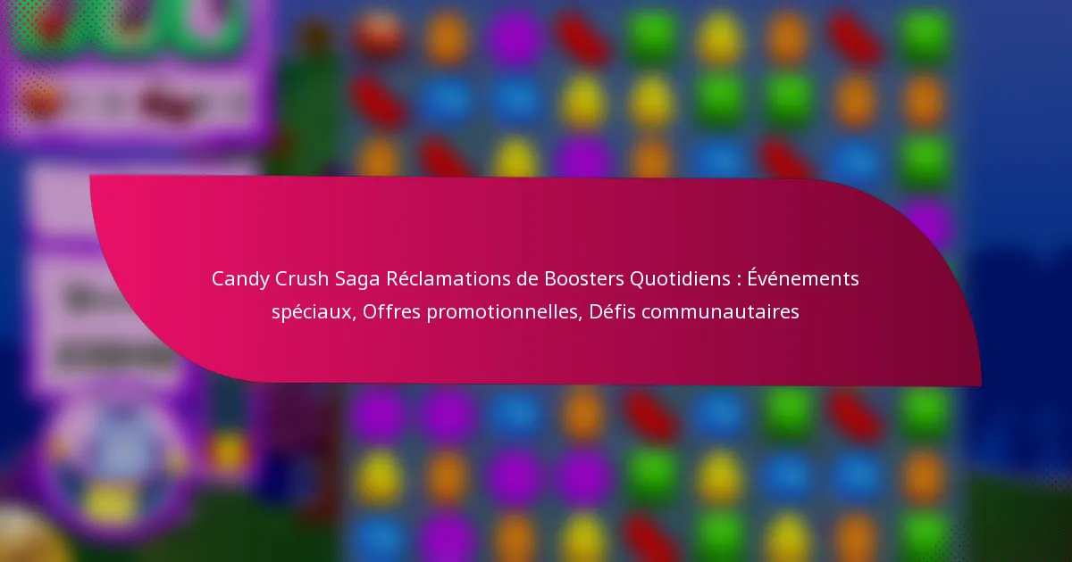 Les Boosters Quotidiens dans Candy Crush Saga sont des récompenses spéciales que les joueurs peuvent réclamer chaque jour pour améliorer leur expérience de jeu. Ces boosters offrent divers avantages, tels que des mouvements supplémentaires ou des bonbons puissants, aidant les joueurs à progresser plus facilement à travers les niveaux.