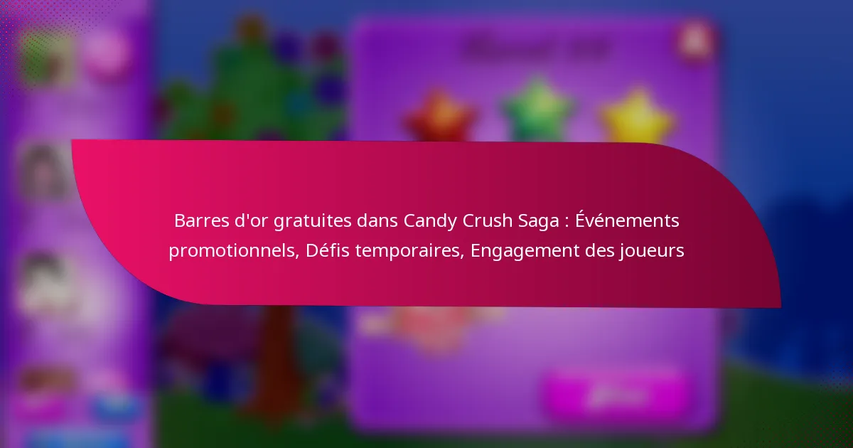 Des événements promotionnels sont souvent organisés par Candy Crush Saga pour engager les joueurs et les récompenser avec des barres d’or gratuites. Ces événements coïncident généralement avec des vacances, des anniversaires de jeu ou des jalons spéciaux. Les joueurs peuvent participer en accomplissant des tâches spécifiques ou en se connectant pendant la période promotionnelle.